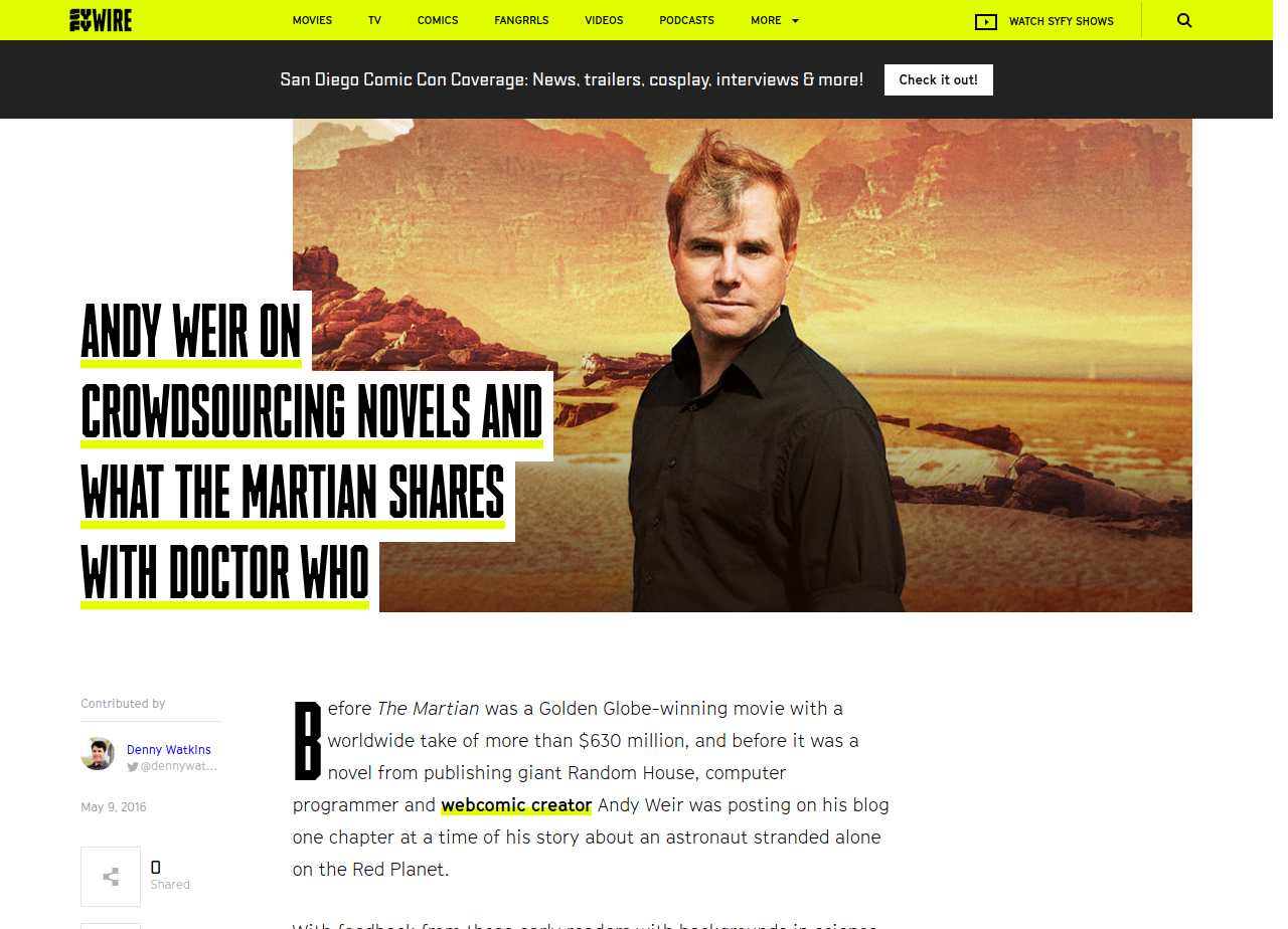 ANDY WEIR built a career as a software engineer until the success of his first published novel, THE MARTIAN, allowed him to live out his dream of writing fulltime. He is a lifelong space nerd and a devoted hobbyist of subjects such as relativistic physics, orbital mechanics, and the history of manned spaceflight. He also mixes a mean cocktail. He lives in California. Andy’s next book, ARTEMIS, is available now.